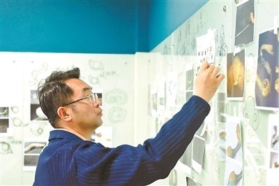 在高鹏的工作室里,几面墙壁上贴满了文物照片、绘画手稿。而在整个设计的过程中,那些在外行看来相差无几的手稿,也都是团队成员精心调整过无数遍得来的。